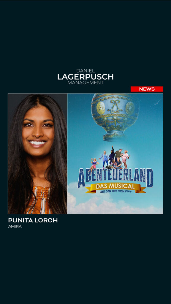 Punita Lorch sammelte bereits erste Bühnenerfahrung als Ensemblemitglied in den Produktionen „Prinzip Hoffnung“, „The Addams Family“ und „Pippin“ bevor sie 2023 die renommierte Stage School in Hamburg besuchte. 2024 feierte Punita ihr professionelles Bühnendebut mit der deutschen Fassung der Londoner West-End-Produktion von „SISTER ACT“, in der sie als Tina sowie als Cover der Hauptrolle Deloris van Cartier zu sehen war. Zudem übernahm Punita in der Produktion das Cover der Schwester Mary Robert. 2025-2026 wird Punita als Erstbesetzung der Amira in der Tournee von „ABENTEUERLAND“ auf der Bühne stehen.